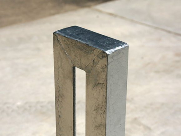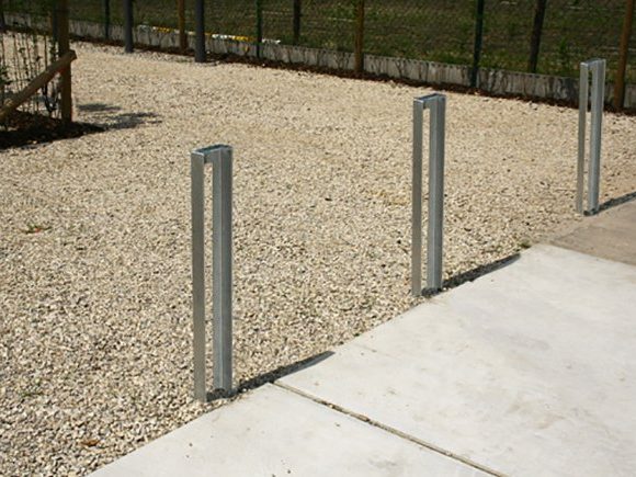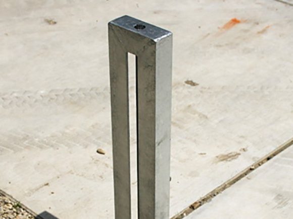 La structure mécano-soudée en cornière d’acier du potelet allie la simplicité au fonctionnel. Son design linéaire et cubique à angles droits uniformes accroche le regard, quel que soit le paysage dans lequel elle s’intègre. De plus, il possède une amusante astuce : pour le transformer en support vélo, il suffit d’y attacher une bicyclette.