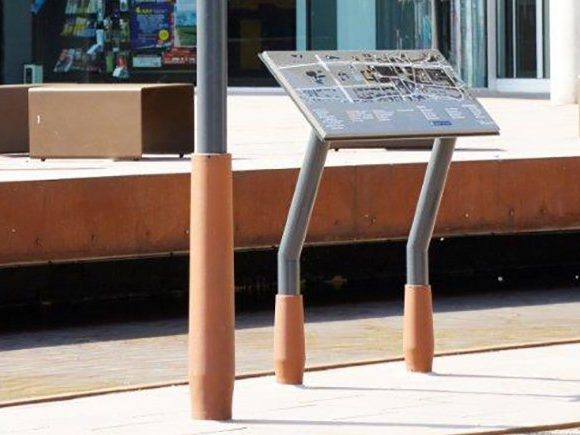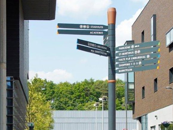 Le design soigné et épuré du mât de signalisation Lignum en fait un objet urbain attrayant et efficace. Il se compose d’un mât, de flèches directionnelles et d’un fanion décoratif. Afin de rendre cette signalisation plus visible dans le paysage urbain, il est possible de choisir une couleur différente pour le mât et le chapeau. Le lettrage des flèches recto/verso est réalisé par fraisage qui est ensuite rempli avec une résine colorée.