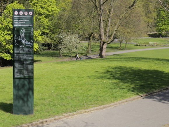 La commune de Schaerbeek a procédé ces dernières années à une rénovation complète de son splendide Parc Josaphat. Ce travail colossal s’est couronné par l’installation d’une signalétique directionnelle et didactique conçue par le Bureau sdesign, elle marque le parc de jalons élégants stimulant sa promenade et sa découverte. URBIS a fabriqué et installé cette signalétique en respectant la volonté du concepteur et du maître d’ouvrage d’assortir au parc un mobilier de grande qualité esthétique et technique. Les textes sont gravés dans l’aluminium, les illustrations et les plans imprimés sur des tôles émaillées rendant pérenne l’investissement de la commune.