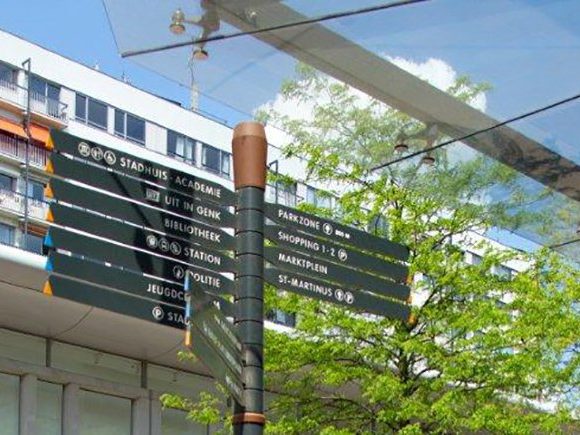 Les autorités de Genk souhaitaient promouvoir la ville et ses infrastructures, tant auprès des habitants que des visiteurs. Pour y parvenir, il était nécessaire que chacun puisse facilement trouver les différentes zones dans la ville et stimuler les déplacements dans un environnement urbain agréable et accueillant. Dès lors, la ville de Genk décida de développer un projet de signalisation global comprenant des mâts de signalisation directionnelle et des pupitres d’information.