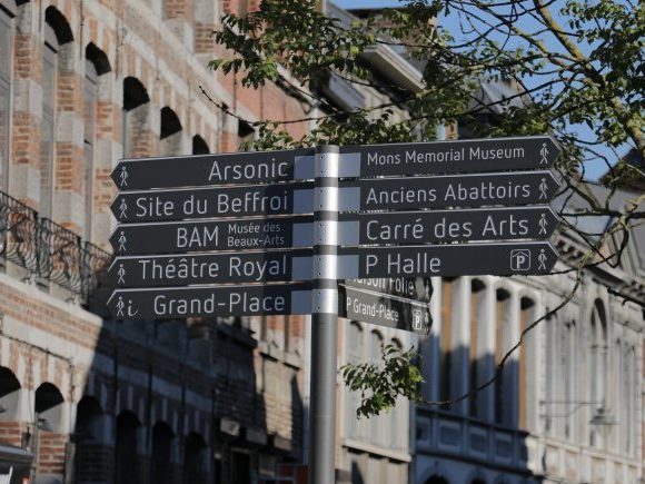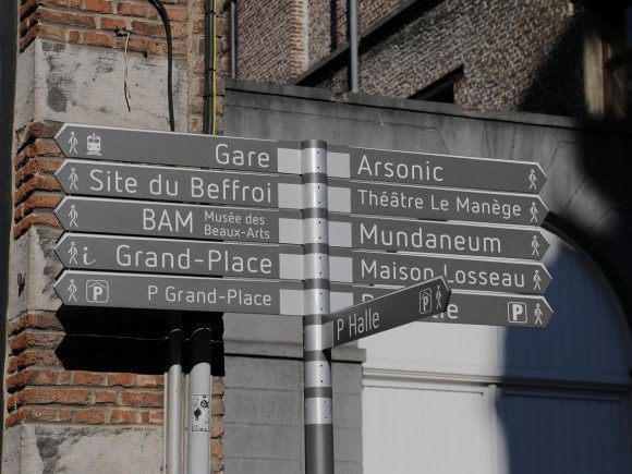 la Ville de Mons a mis à jour sa signalétique piétonne et automobile à l’aide de 88 mâts piétons, 21 mâts automobilistes, 7 mâts pour le fléchage dynamique des parkings.